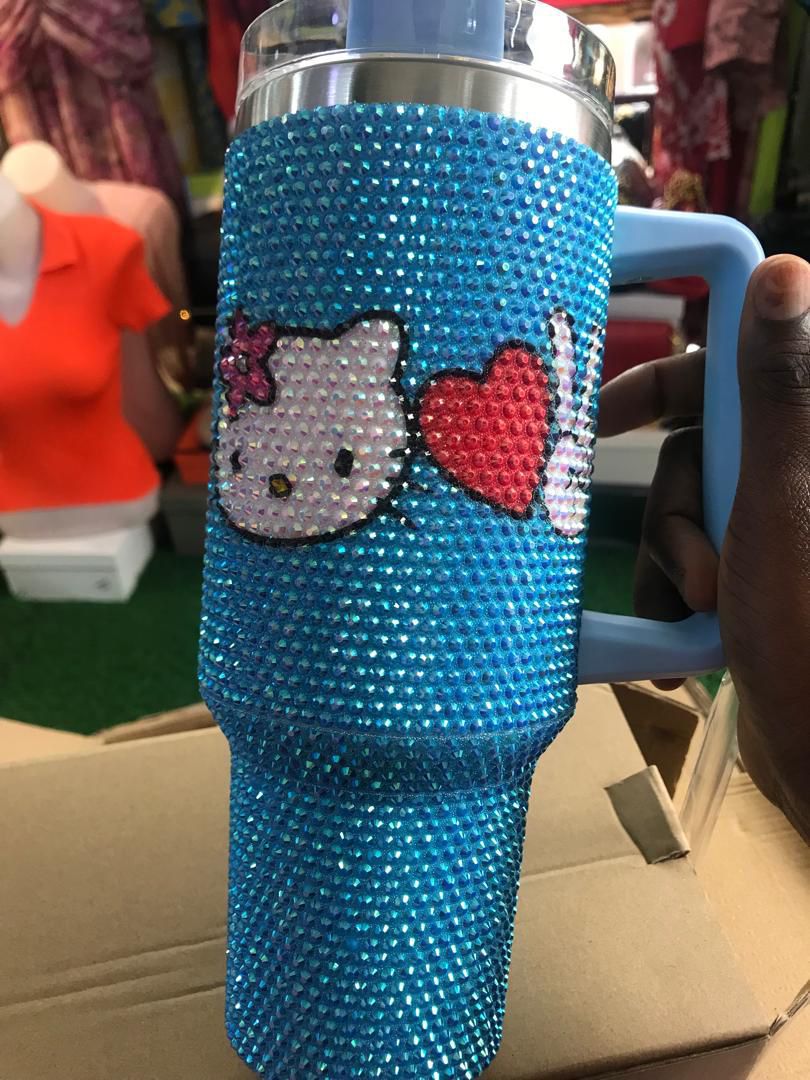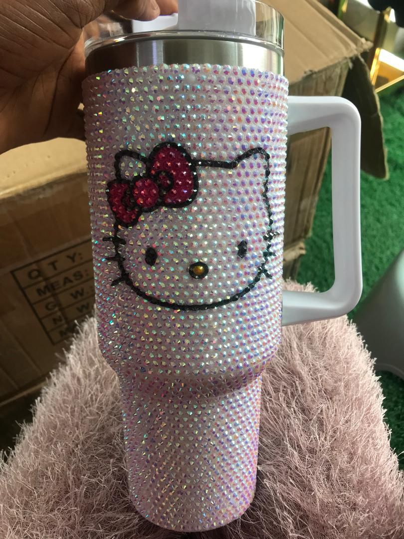 Stay stylish and hydrated with this 40oz rhinestone kitty cat tumbler. Adorned with sparkling crystals and a cute cat design, it keeps drinks hot or cold for hours. Durable, reusable, and perfect for cat lovers who want a touch of glamour on the go.